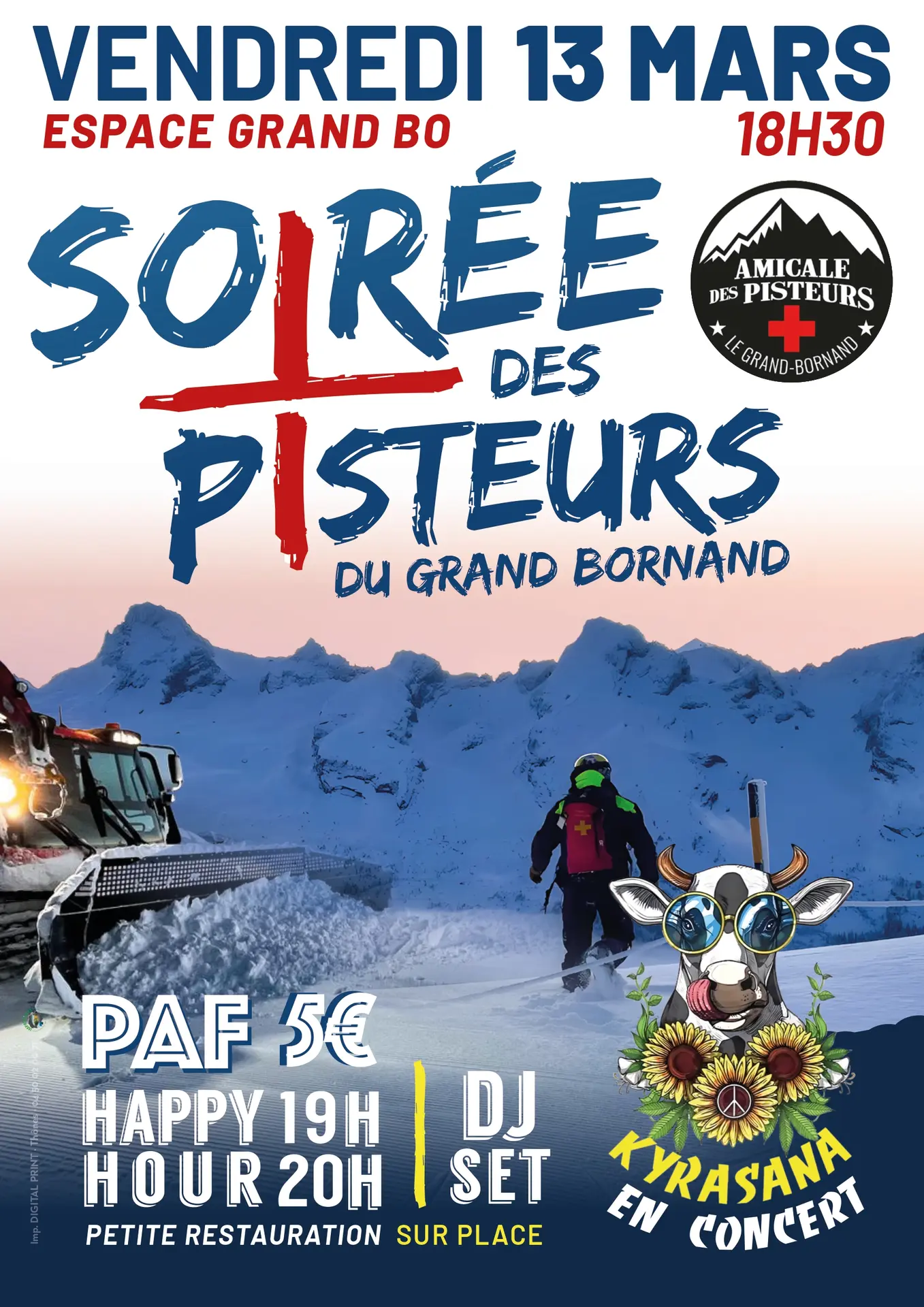 Evening organised by the Amicale des Pisteurs du Grand-Bornand. Concert. Happy hour DJ set from 7 pm to 8 pm. Light refreshments on site.